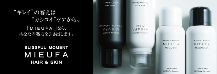 顔やお肌のUVケアはしているけど、髪のUVケアって必要なの?そんな疑問を耳にします。髪や頭皮もお肌と同じく紫外線からのダメージを受け、強い紫外線を浴び続けるとパサつきやカラーの褪色などキレイな髪が台無しに。MIEUFAならそんなあなたの髪をしっかりとサポートします。6種のオーガニックハーブエキスやオレンジ油、ローズヒップ油、ヘーゼルナッツ油、ブドウ種子油などの保湿効果でしっかりとケアをしながらキレイをサポート。
